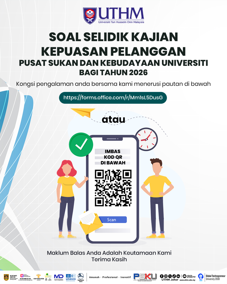 The University Sports and Cultural Centre, Universiti Tun Hussein Onn Malaysia (UTHM), is committed to protecting your privacy. Any personal information collected through this website will only be used for academic, administrative, or service-related purposes and will not be shared with third parties except as required by law.